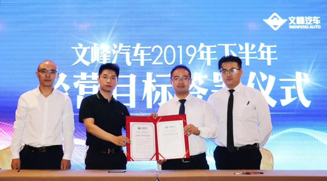 為貫徹落實集團下達的2019年下半年重點任務,實現公司年度經營目標任務的有效分解,第一天會議尾聲時,在文峰汽車總裁陳曉的見證下,文峰汽車各品牌門店均簽署了下半年度的經營目標責任狀。經營目標責任狀的簽訂,進一步強化了目標管理理念,形成契約機制,更好地落實經營責任,為沖刺2019年度業績指標打下了堅實基礎。