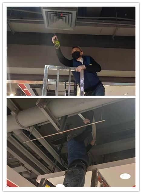 加強各大門店的空氣流通,保證新風系統在營業期間內不間斷工作,中庭樓頂換氣窗保持24小時常開,商場排煙系統每小時開啟一次,保持空氣的流通。