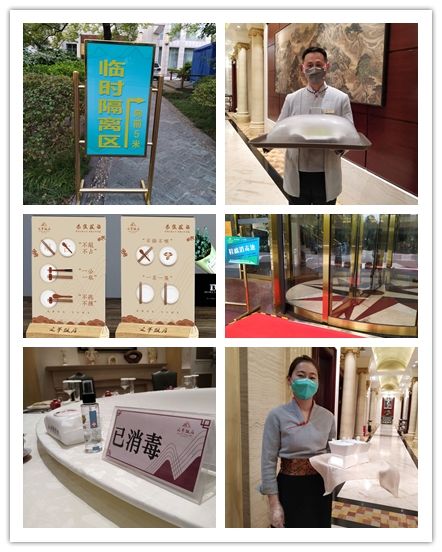 3月17日,南通大飯店正式恢復堂食,至此,南通大飯店住宿、餐飲等經營業務恢復營業。復工后的南通大飯店對疫情防控工作進行了嚴謹、細致的部署,成立了專門的防疫小組,對各部門各區域實行嚴防嚴控。 服務人員的健康與每一位顧客的健康息息相關。為此,南通大飯店對返崗員工實行精準的實時跟蹤管理體制,對從外地返通的員工,實行嚴格的14天居家隔離觀察。 酒店前廳部每天在酒店入口處對所有賓客進行體溫測量,測量結果登記存檔,并建立《賓客健康狀況登記表》,以確保掌握所有客人的健康狀況,便于追溯。